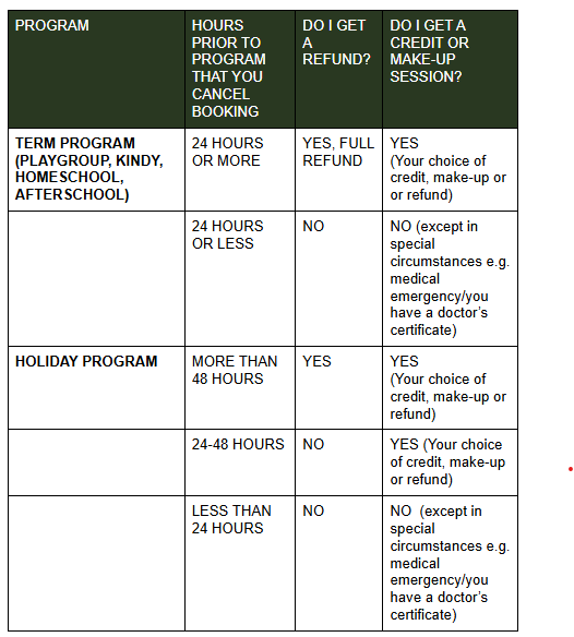 However, the safety of our Wildlings is the most important and we do have a Severe Weather Policy in place. If we do need to cancel a session due to severe weather, you will always receive an email and text message to the contact information noted on your booking. Please check your emails before heading to a session to assure there have been no changes to your session. Thank you!