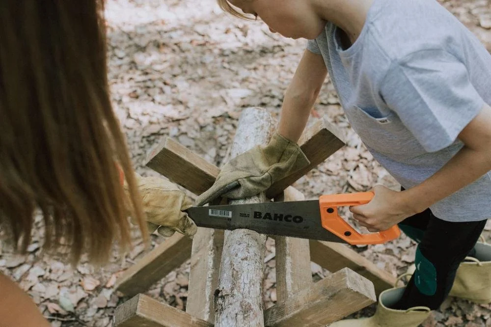 During this session children will have supervised use of our hand tools including bow saws, saws, hammers, hand drills, whittling knives.